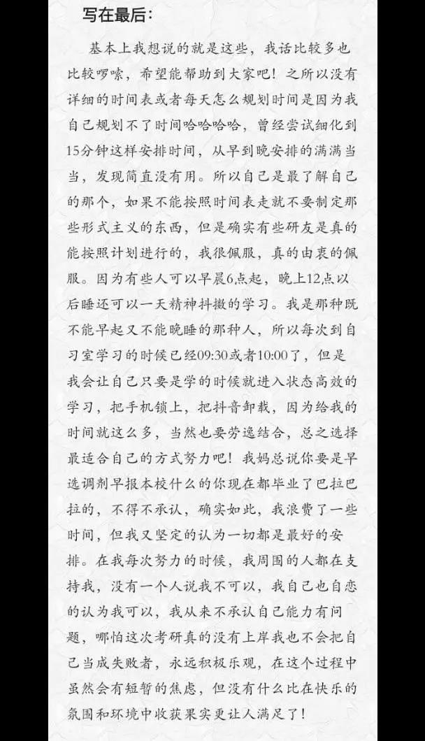 以上就是本次分享的新鮮考研經(jīng)驗貼啦~再次感謝同學們的支持,希望以上經(jīng)驗貼能夠幫助22考研的學弟學妹們,想要獲取更多資訊,請持續(xù)關注本網(wǎng)站!