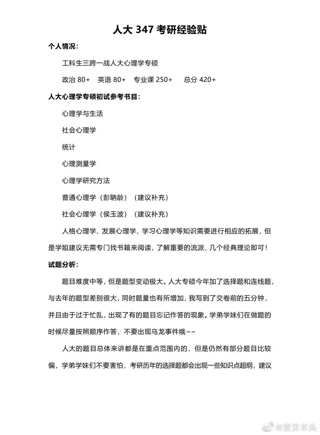 學(xué)姐本科是工科生,三跨人大心理學(xué),一戰(zhàn)成碩~