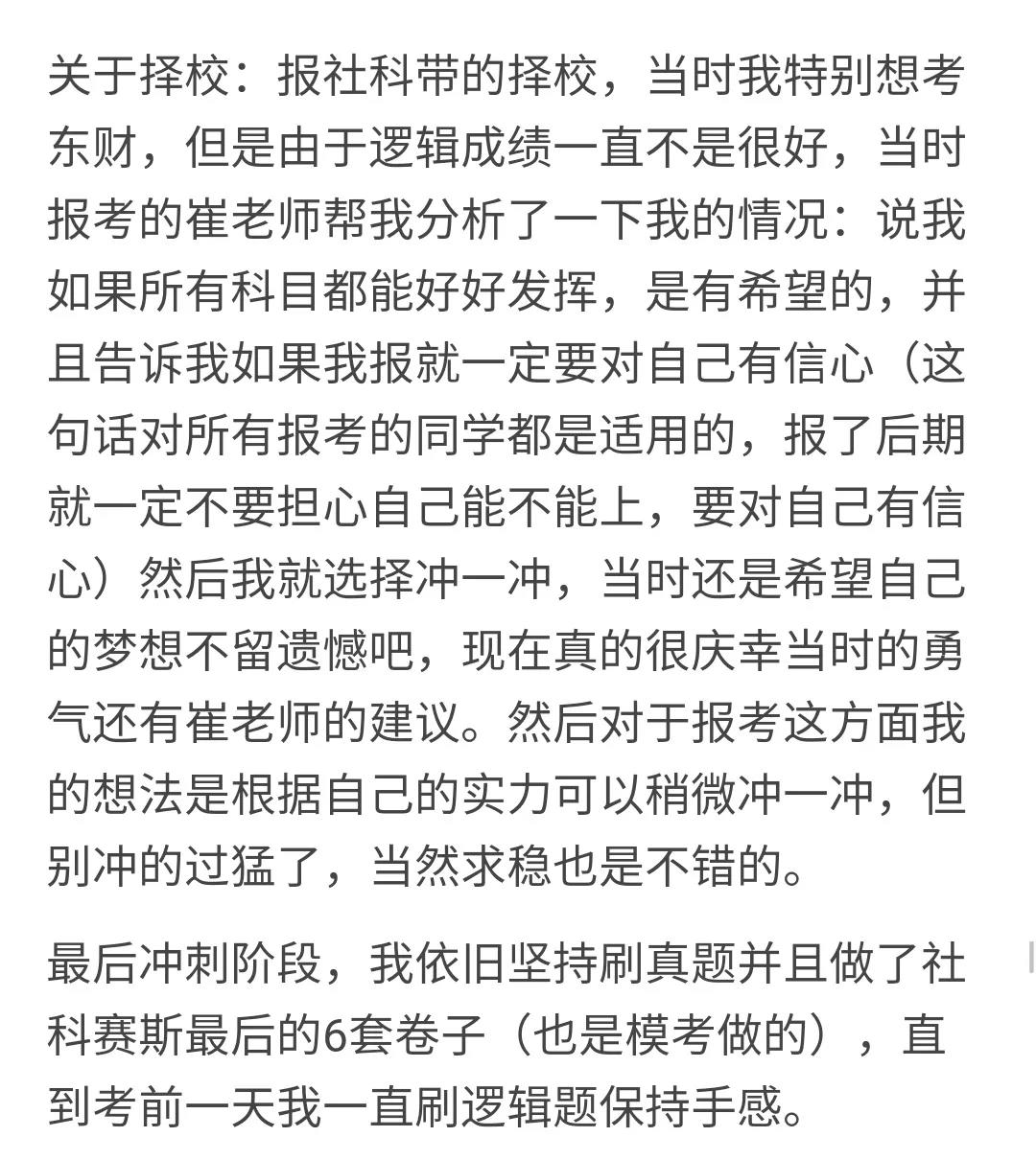 關(guān)于擇校:保持信心,求穩(wěn)。沖刺階段,堅(jiān)持刷真題和社科賽斯最后的6套卷子,保持手感。