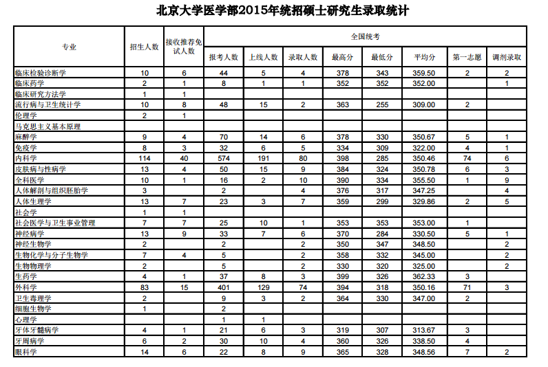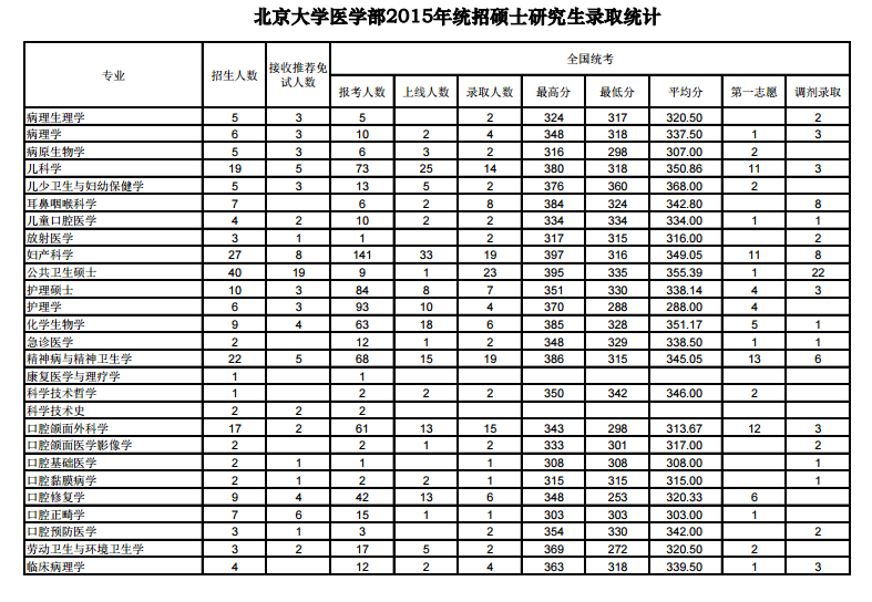 北京大學(xué)醫(yī)學(xué)部2015年考研報(bào)錄比