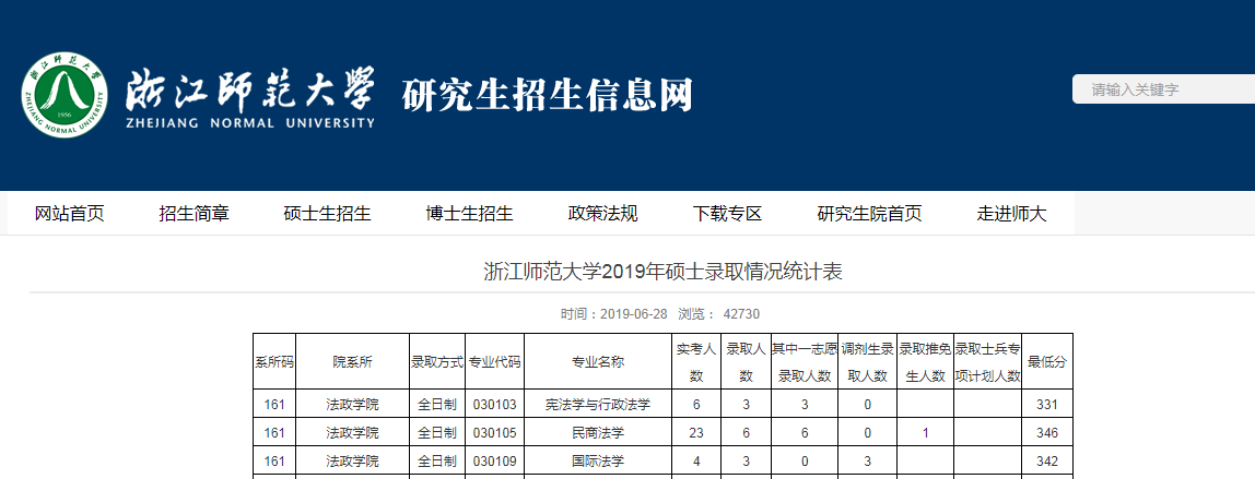 浙江師范大學(xué)2019年碩士錄取情況統(tǒng)計(jì)表