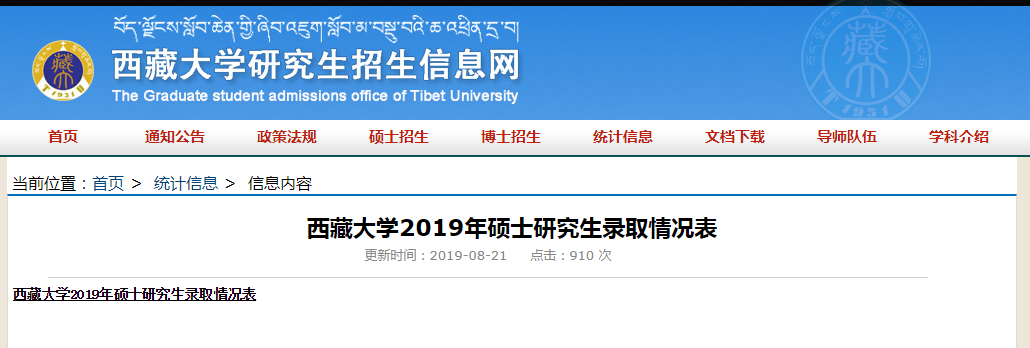 西藏大學(xué)2019年碩士研究生報(bào)考錄取情況表