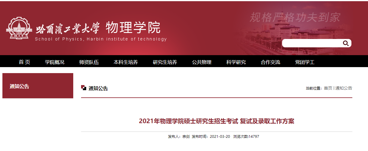 “2021考研復(fù)試安排_復(fù)試時間_復(fù)試方式:哈爾濱工業(yè)大學(xué)2021年物理學(xué)院碩士研究生招生考試復(fù)試及錄取工作方案”的的全部內(nèi)容。其他院校的2021復(fù)試錄取安排可戳→