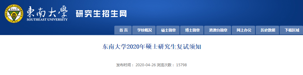 以上就是“關于東南大學2020年碩士研究生復試的相關安排”的全部內(nèi)容。祝您考研成功!