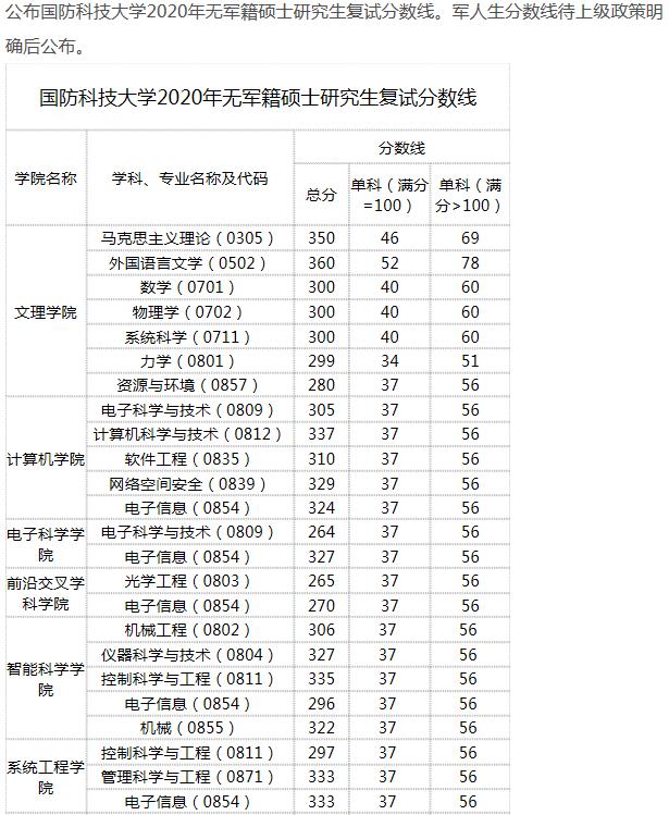 分?jǐn)?shù)線,國(guó)防科技大學(xué)也公布了2020年碩士研究生招生復(fù)試