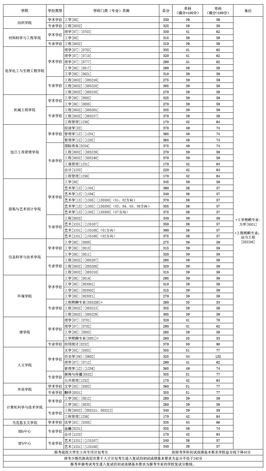 東華大學(xué)2019年碩士研究生招生考試復(fù)試分?jǐn)?shù)線?