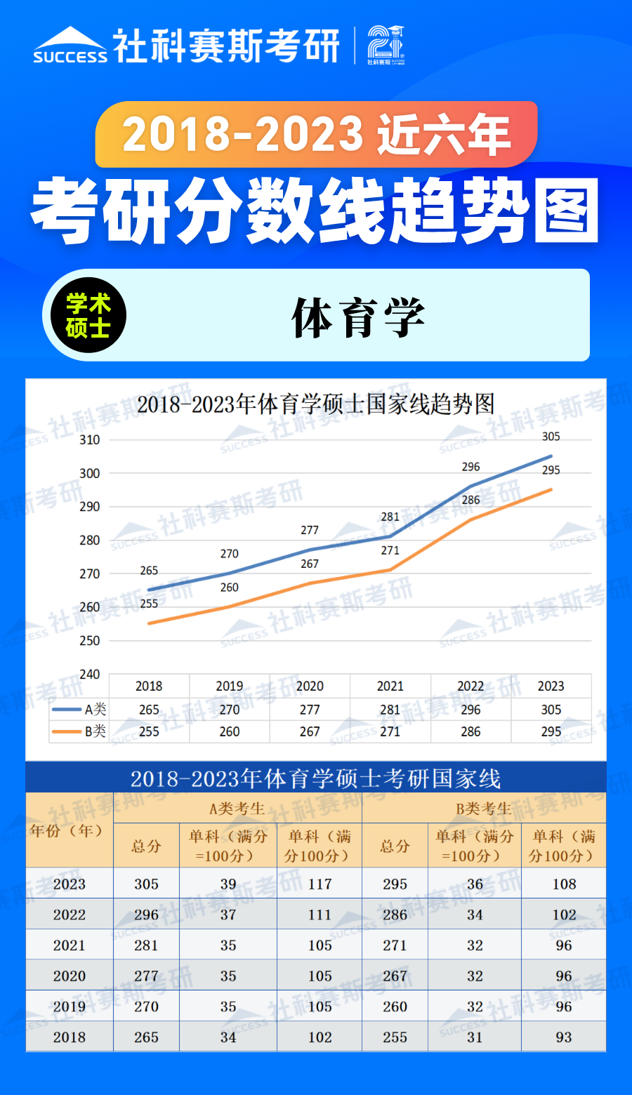 2023考研分?jǐn)?shù)線:2018-2023年體育學(xué)碩士近六年考研分?jǐn)?shù)線趨勢圖