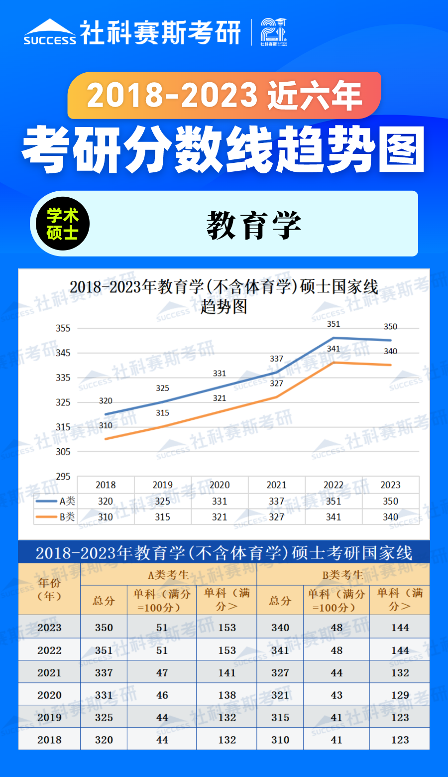 2023考研分?jǐn)?shù)線:2018-2023年教育學(xué)專業(yè)近六年考研分?jǐn)?shù)線趨勢圖