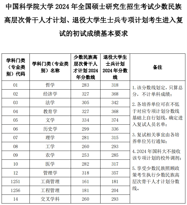2024考研分?jǐn)?shù)線:中國(guó)科學(xué)院大學(xué)2024年全國(guó)碩士研究生招生考試少數(shù)民族高層次骨干人才計(jì)劃、退役大學(xué)生士兵專(zhuān)項(xiàng)計(jì)劃考生進(jìn)入復(fù)試的初試成績(jī)基本要求”的內(nèi)容,廣大考生關(guān)注一下~