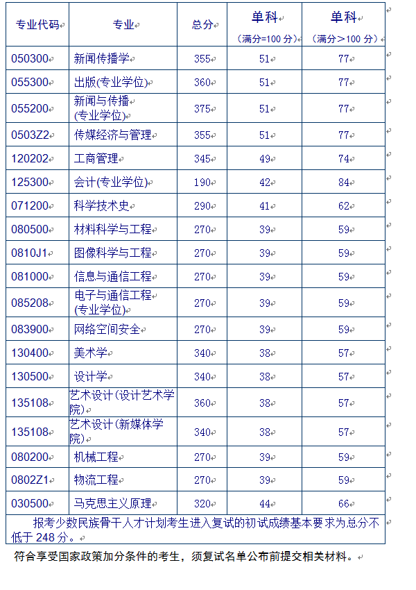 北京印刷學(xué)院2019年考研復(fù)試分?jǐn)?shù)線
