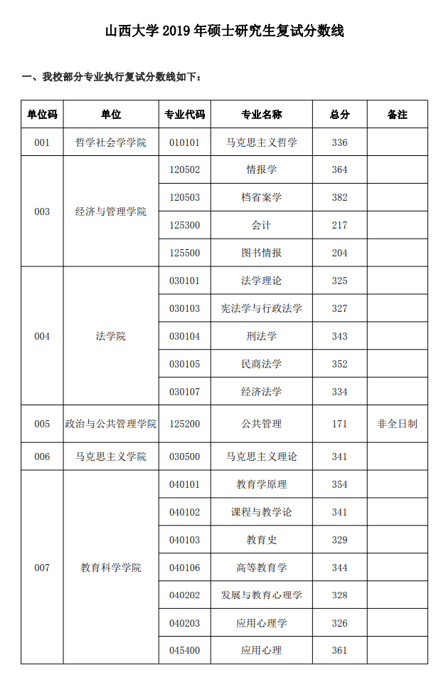 山西大學(xué)2019年考研復(fù)試分?jǐn)?shù)線