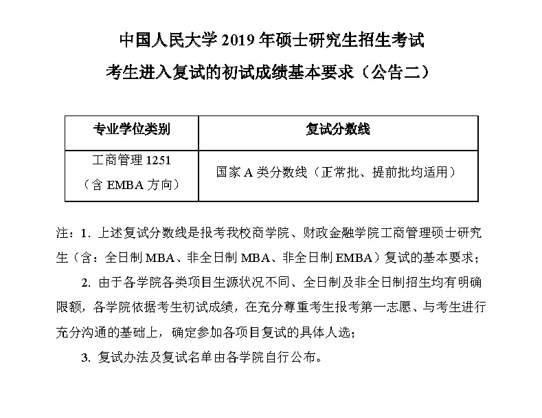 2019年中國(guó)人民大學(xué)自主劃線初試成績(jī)