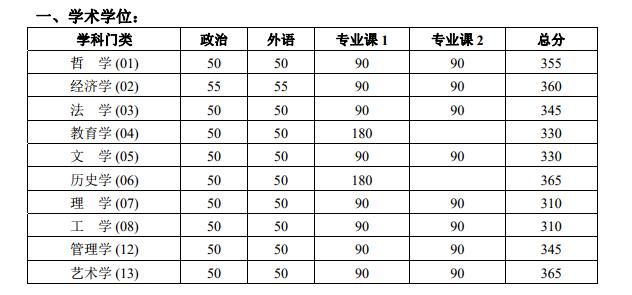 學(xué)科門類 政治 外語 專業(yè)課1 專業(yè)課2 總分