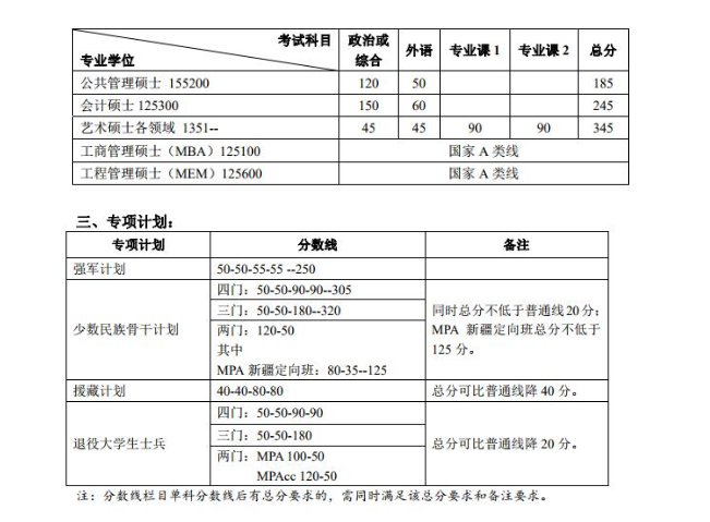政治或綜合 外語 專業(yè)課1 專業(yè)課2 總分
