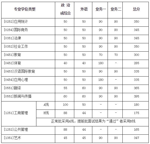二、學校復試基本分數線(專業(yè)學位類)