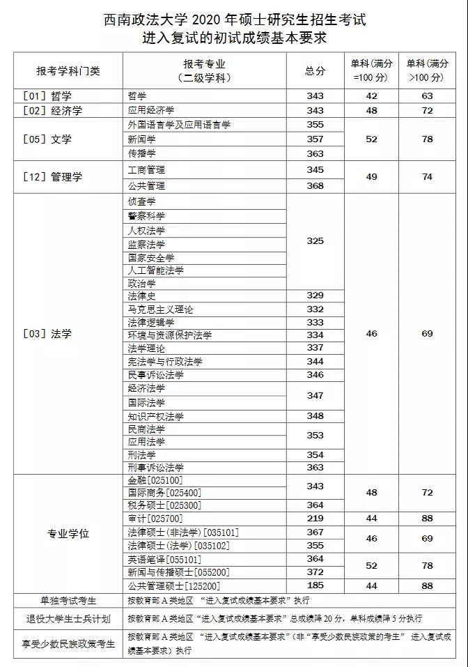 分?jǐn)?shù)線,西南政法大學(xué)已經(jīng)公布2020年碩士研究生入學(xué)考試復(fù)試基本