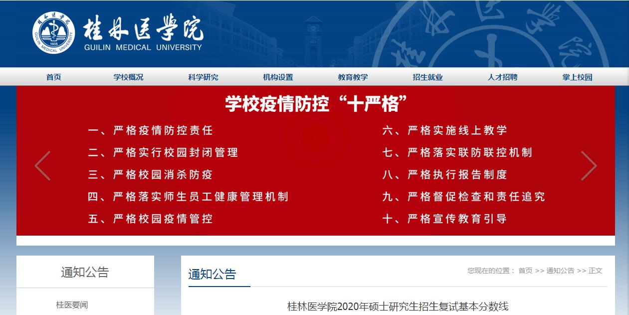 分?jǐn)?shù)線,桂林醫(yī)學(xué)院已經(jīng)公布2020年碩士研究生入學(xué)考試復(fù)試基本