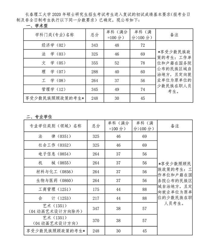 當(dāng)前位置: 分?jǐn)?shù)線 > 2020考研分?jǐn)?shù)線:長(zhǎng)春理工大學(xué)2020年碩士研究生招生考試考生進(jìn)入復(fù)試的初試成績(jī)基本要求