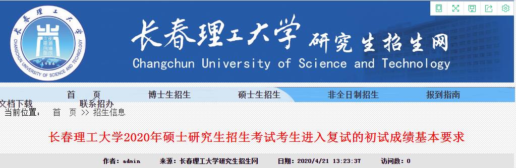 2020考研分?jǐn)?shù)線:長(zhǎng)春理工大學(xué)2020年碩士研究生招生考試考生進(jìn)入復(fù)試的初試成績(jī)基本要求