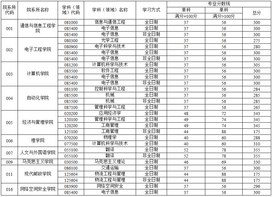 西安郵電大學(xué)2020年碩士研究生招生進(jìn)入復(fù)試的初試成績基本要求
