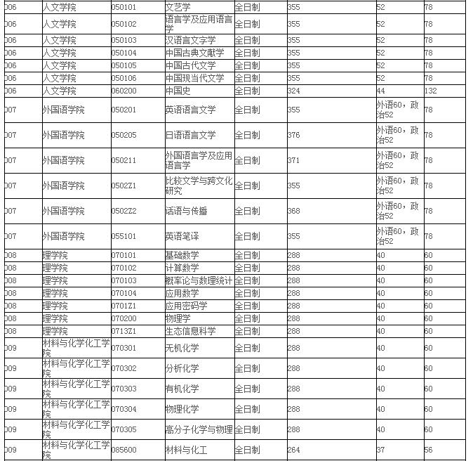 根據(jù)教育部相關(guān)文件精神,結(jié)合我校研究生招生工作實(shí)際情況,我校2020年碩士研究生進(jìn)入復(fù)試的初試成績(jī)基本要求按國(guó)家A類考生分?jǐn)?shù)線執(zhí)行,一志愿生源充足的專業(yè)可適當(dāng)提高復(fù)試分?jǐn)?shù)線,具體如下: