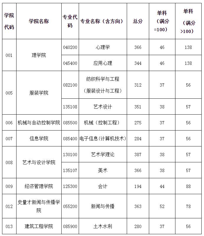 同一學院同一專業(yè)的全日制和非全日制研究生劃定公布相同的分數(shù)線。現(xiàn)將自劃線專業(yè)復試分數(shù)線公布如下: