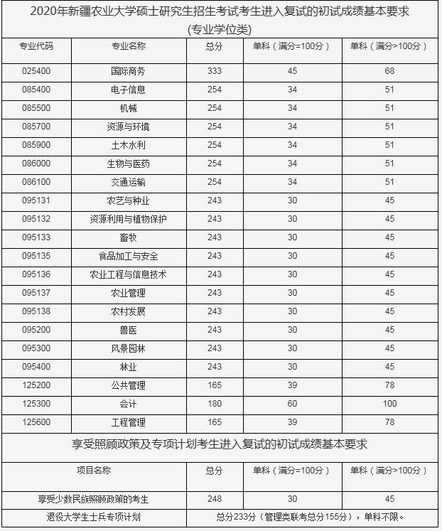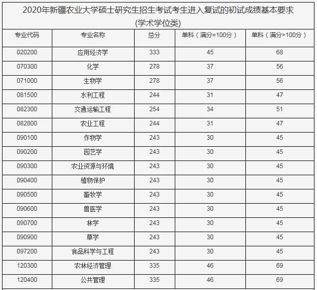 2020考研分數(shù)線:新疆農(nóng)業(yè)大學2020年碩士研究生復試基本分數(shù)線