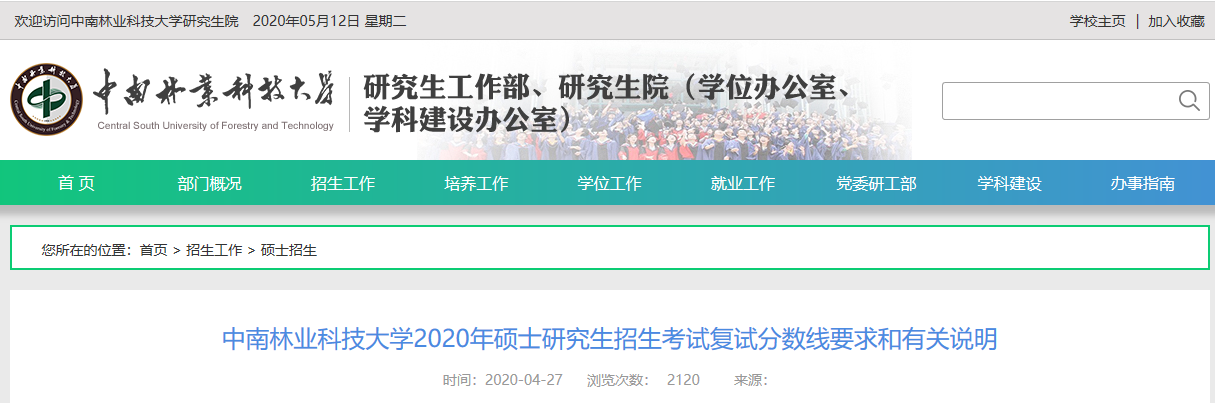 繼2020考研國(guó)家線公布后,34所自主劃線院校和各大院校也陸續(xù)公布2020年復(fù)試分?jǐn)?shù)線,中南林業(yè)科技大學(xué)也公布了2020年碩士研究生招生復(fù)試分?jǐn)?shù)線。
