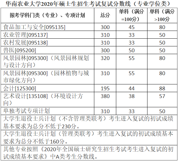 當(dāng)前位置: 分?jǐn)?shù)線 > 2020考研分?jǐn)?shù)線:華南農(nóng)業(yè)大學(xué)2020年碩士研究生招生復(fù)試分?jǐn)?shù)線