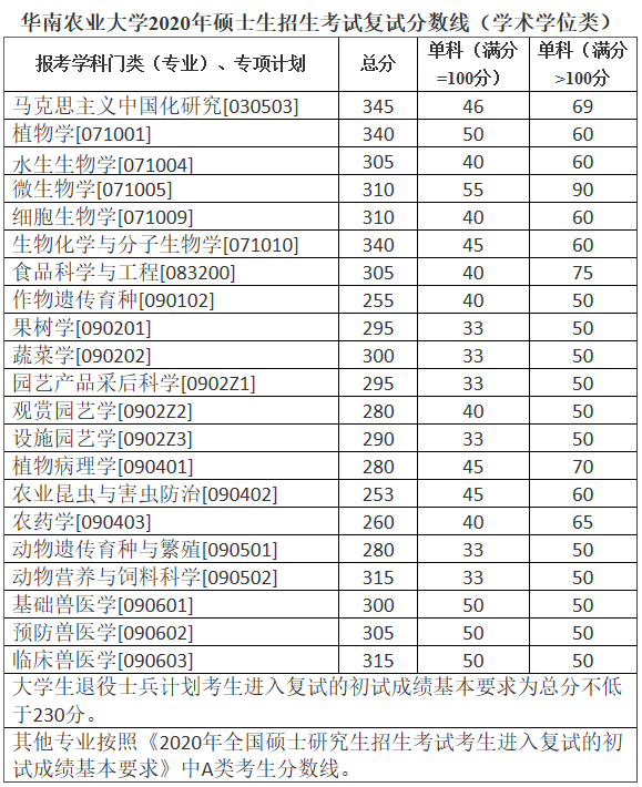 2020考研分?jǐn)?shù)線:華南農(nóng)業(yè)大學(xué)2020年碩士研究生招生復(fù)試分?jǐn)?shù)線