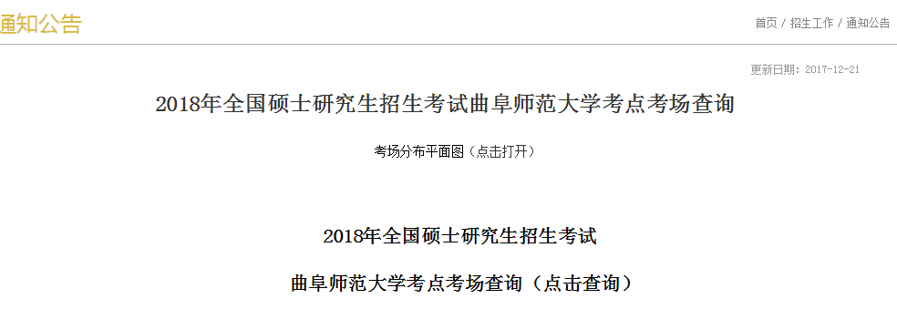 【考研考場安排】曲阜師范大學(xué)2018考研考場安排