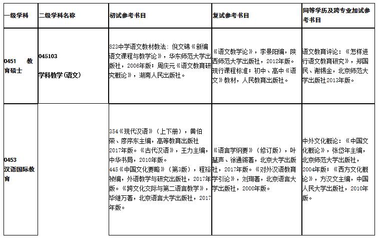 2021考研參考書目:陜西理工大學文學院2021年碩士研究生考試初、復試參考科目(專業(yè)學位)
