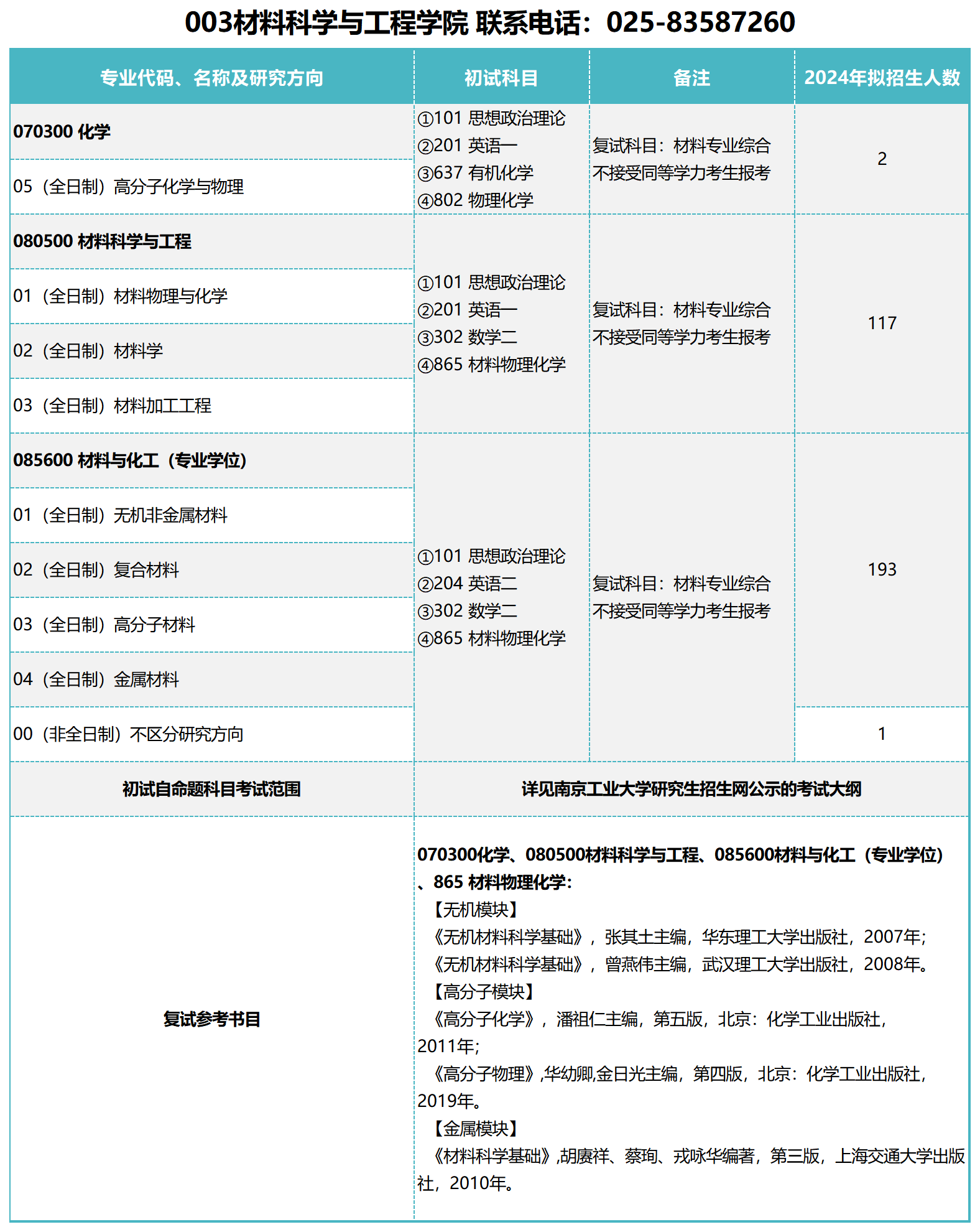 以上就是“2024考研參考書(shū)目:南京工業(yè)大學(xué)材料科學(xué)與工程學(xué)院2024年碩士研究生招生參考書(shū)目”的內(nèi)容,更多考研信息,請(qǐng)持續(xù)關(guān)注本網(wǎng)站。