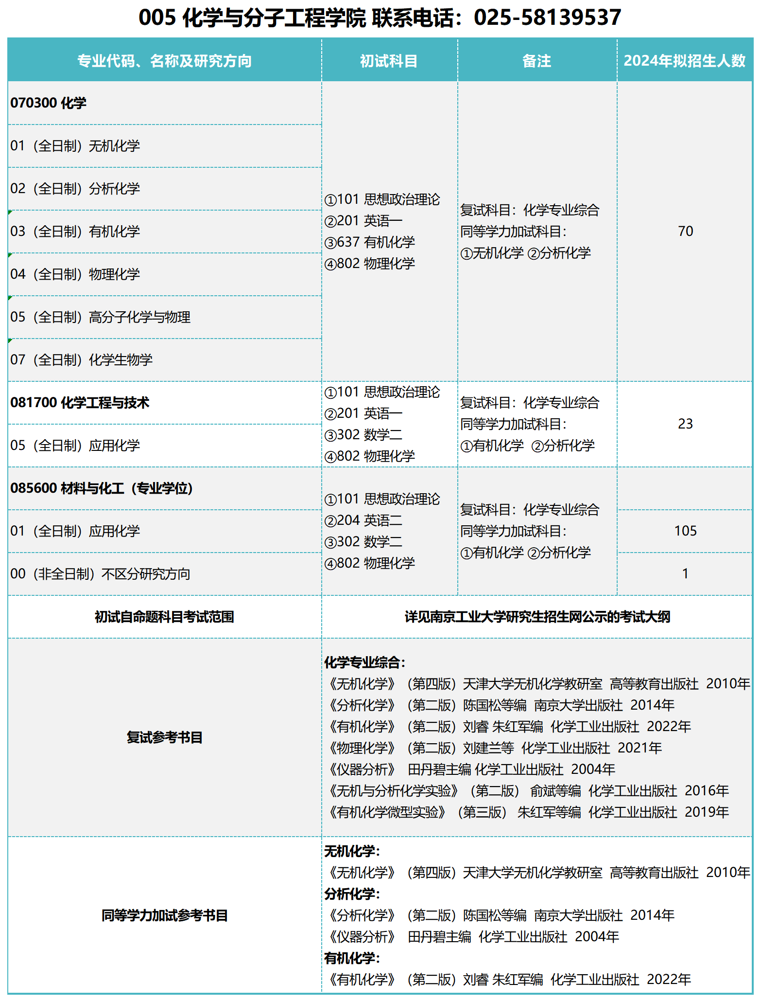 以上就是“2024考研參考書目:南京工業(yè)大學(xué)化學(xué)與分子工程學(xué)院2024年碩士研究生招生參考書目”的內(nèi)容,更多考研信息,請(qǐng)持續(xù)關(guān)注本網(wǎng)站。