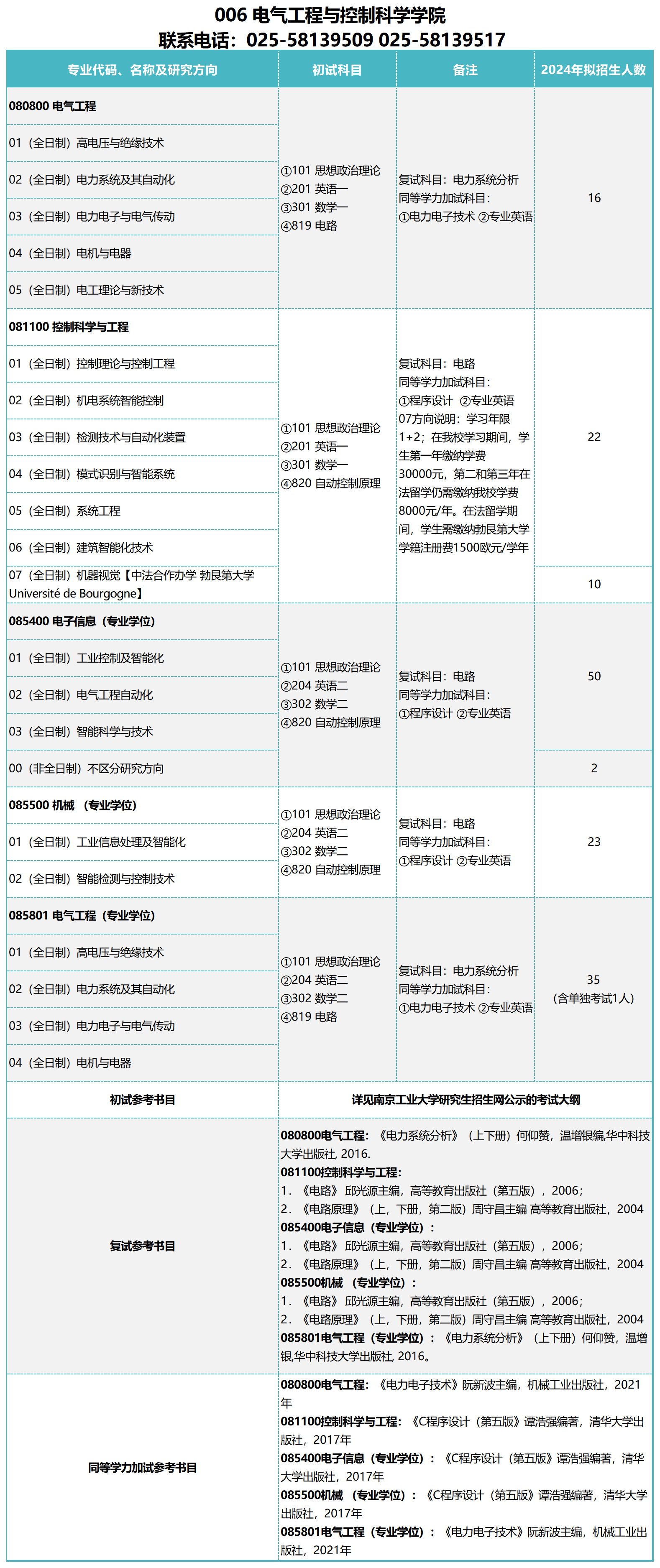 以上就是“2024考研參考書目:南京工業(yè)大學電氣工程與控制科學學院2024年碩士研究生招生參考書目”的內(nèi)容,更多考研信息,請持續(xù)關(guān)注本網(wǎng)站。