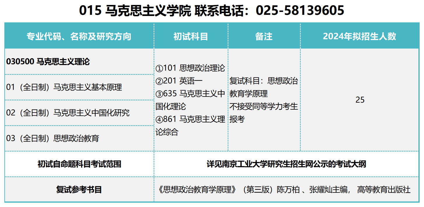 以上就是“2024考研參考書目:南京工業(yè)大學(xué)馬克思主義學(xué)院2024年碩士研究生招生參考書目”的內(nèi)容,更多考研信息,請持續(xù)關(guān)注本網(wǎng)站。