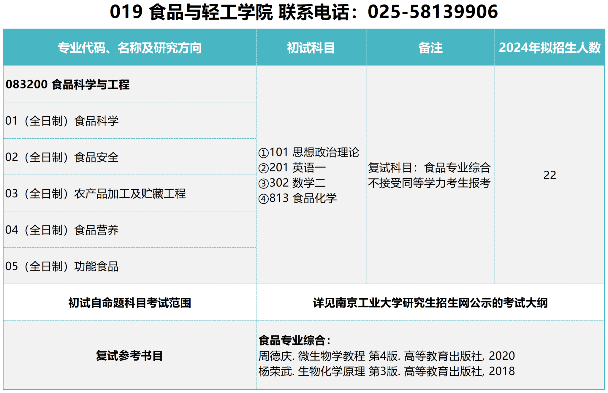 以上就是“2024考研參考書目:南京工業(yè)大學食品與輕工學院2024年碩士研究生招生參考書目”的內(nèi)容,更多考研信息,請持續(xù)關(guān)注本網(wǎng)站。