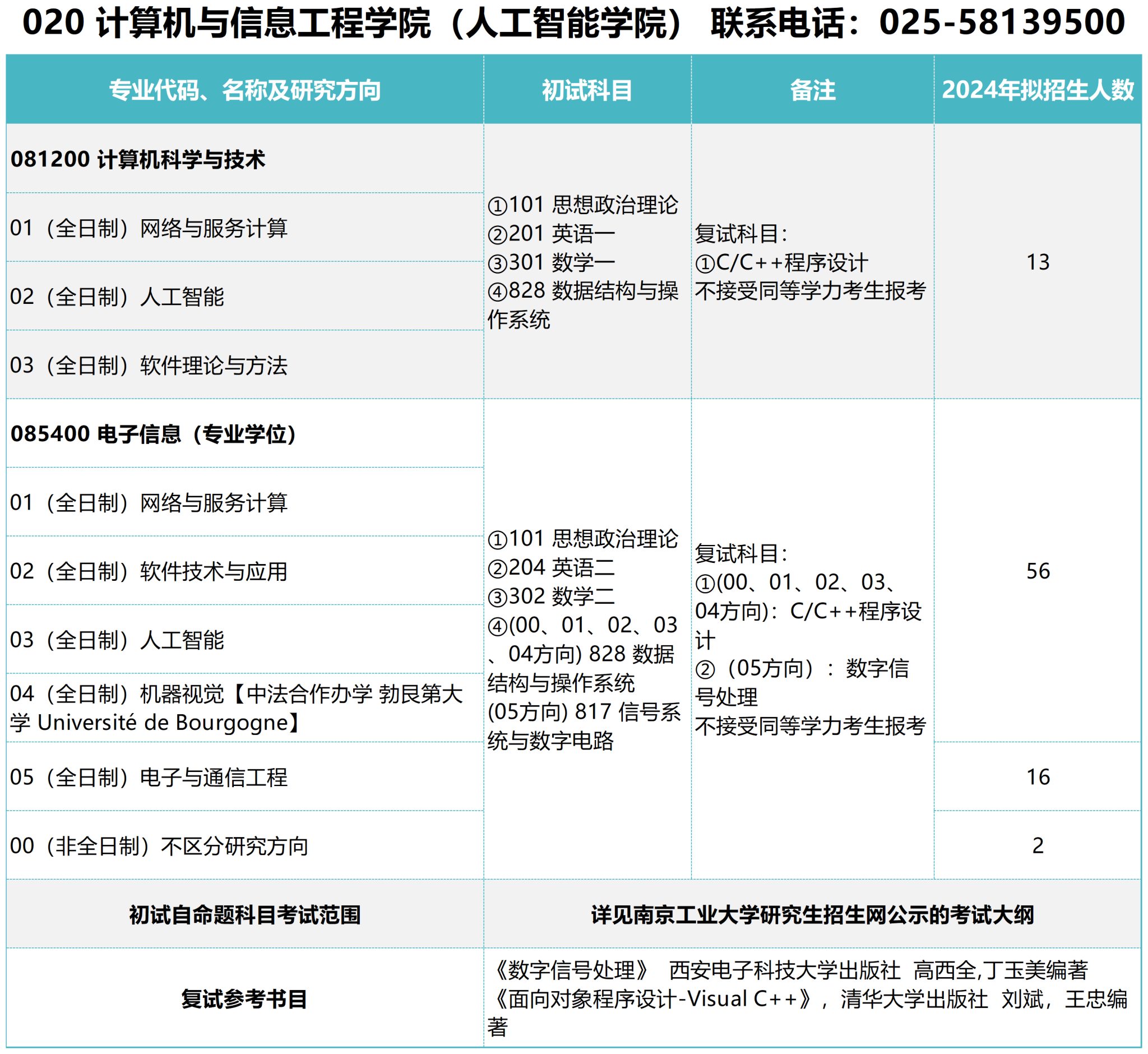 以上就是“2024考研參考書目:南京工業(yè)大學(xué)計(jì)算機(jī)與信息工程學(xué)院(人工智能學(xué)院)2024年碩士研究生招生參考書目”的內(nèi)容,更多考研信息,請持續(xù)關(guān)注本網(wǎng)站。