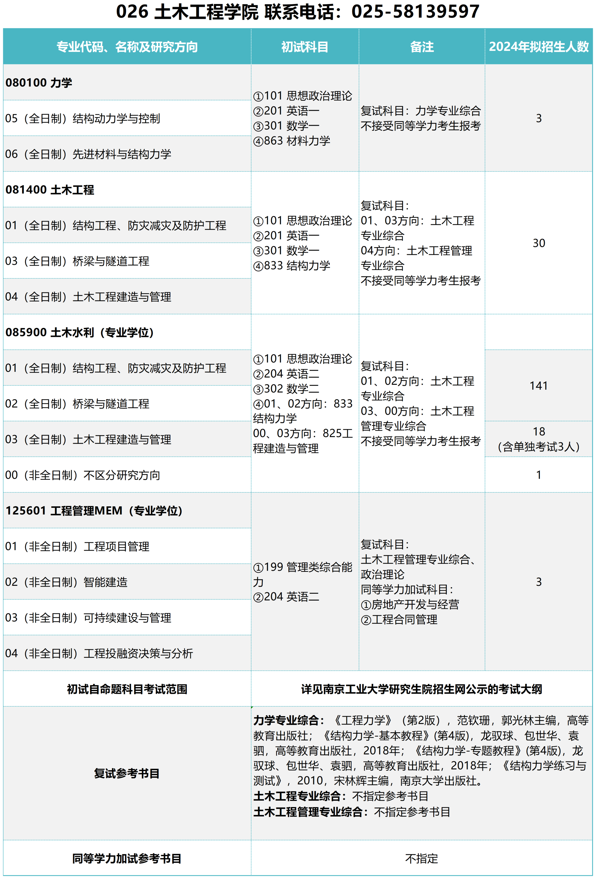 以上就是“2024考研參考書目:南京工業(yè)大學(xué)土木工程學(xué)院2024年碩士研究生招生參考書目”的內(nèi)容,更多考研信息,請持續(xù)關(guān)注本網(wǎng)站。