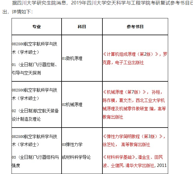 以上是“四川大學空天科學與工程學院2019研究生復試參考書目”,有需要的2020級寶寶們也可以參考哦!