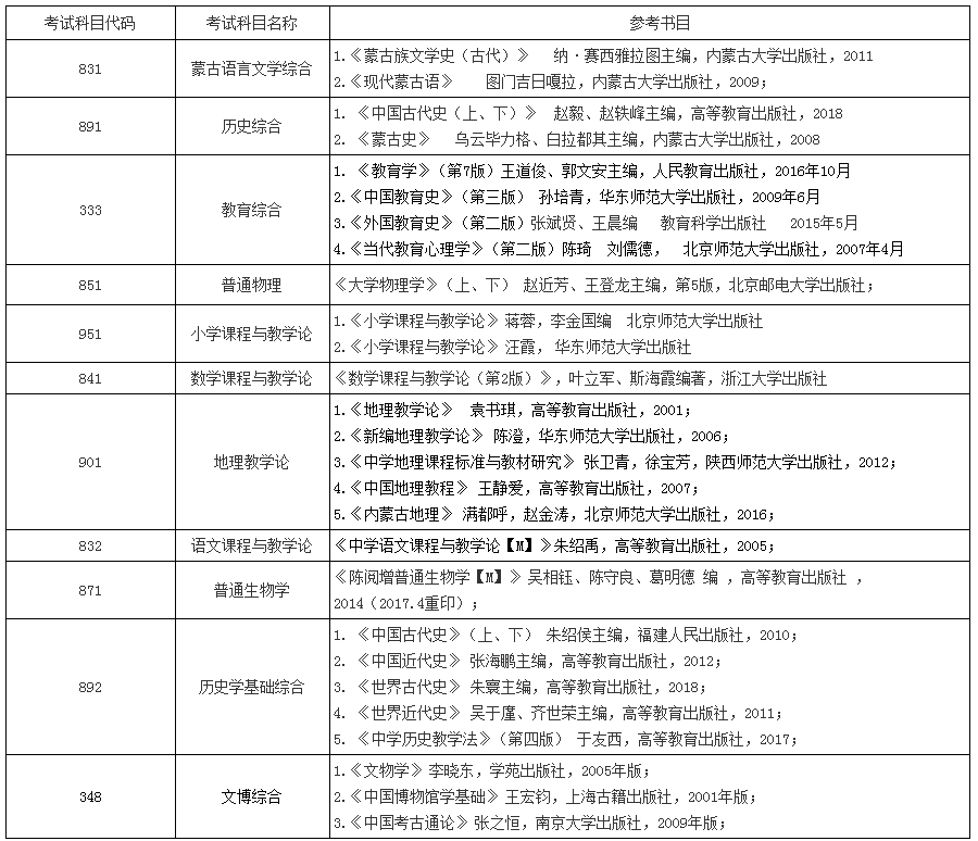赤峰學(xué)院2020年研究生初試自命題考試范圍(參考書(shū)目)