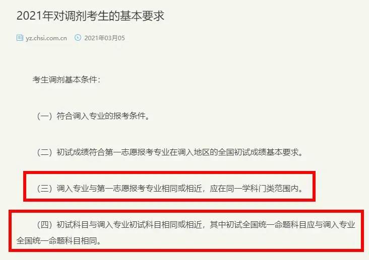 調(diào)劑規(guī)則新增要求“初試全國統(tǒng)一命題科目應(yīng)與調(diào)入專業(yè)全國統(tǒng)一命題科目相同”,也就是說,如果你原專業(yè)考的是數(shù)學(xué)一,那今年按照政策字面意思你是不能調(diào)劑到考數(shù)學(xué)二的專業(yè)的。