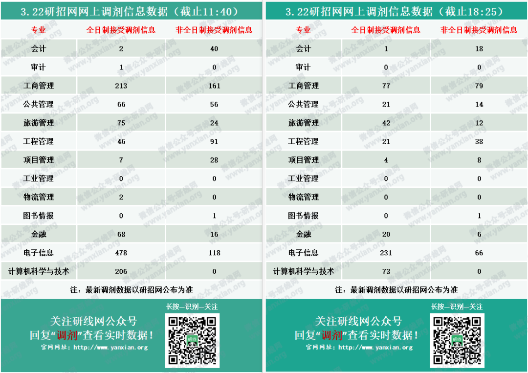 截止3月22日18:25,調(diào)劑信息有所變動!部分專業(yè)調(diào)劑名額減少一半以上。把握機(jī)會,調(diào)劑信息戰(zhàn),一定要迅速!