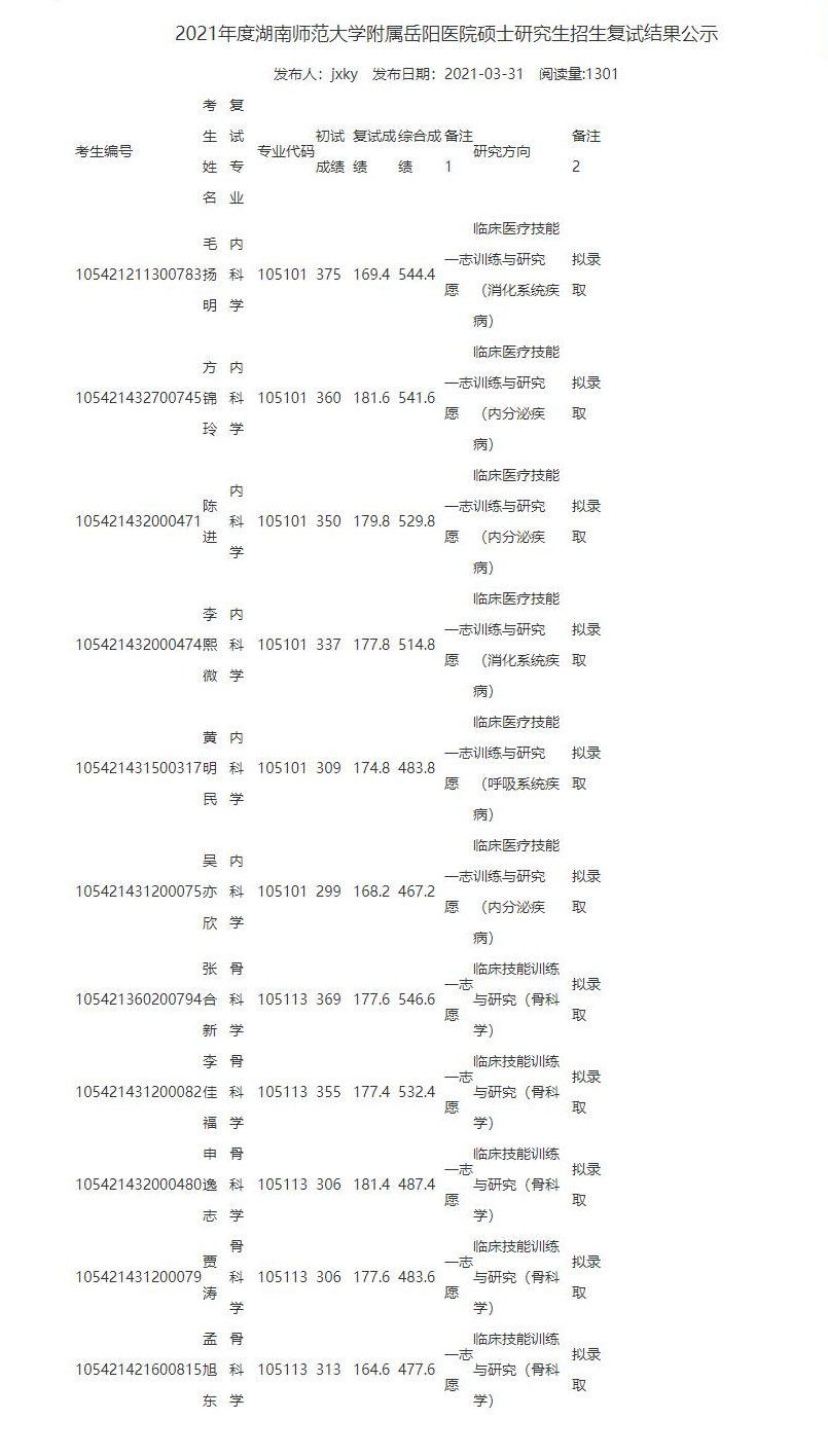 2021考研擬錄取名單:湖南師范大學2021年碩士研究生一志愿考生復試結(jié)果發(fā)布
