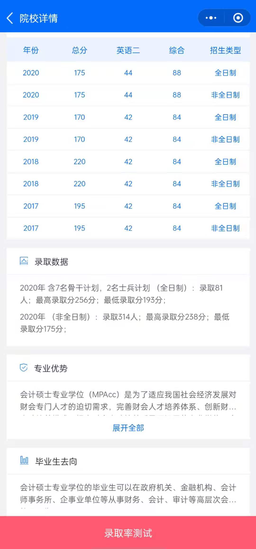 當(dāng)前位置: 考研動態(tài) > MPAcc考研助手來了!擇校數(shù)據(jù)全面真實,錄取概率精準(zhǔn)評估!