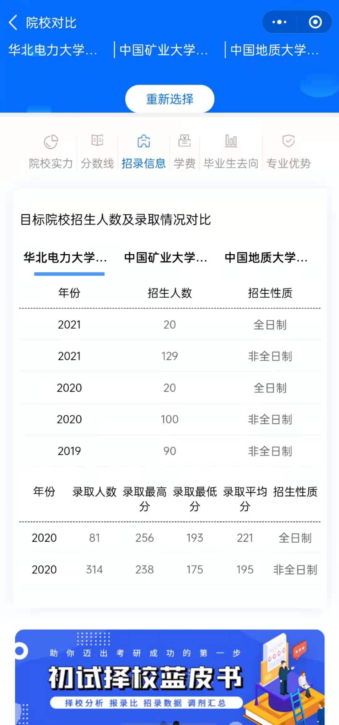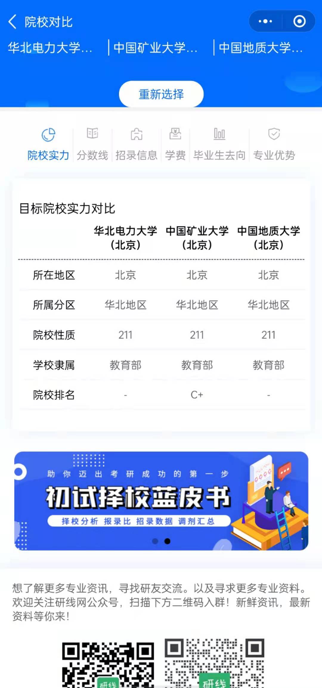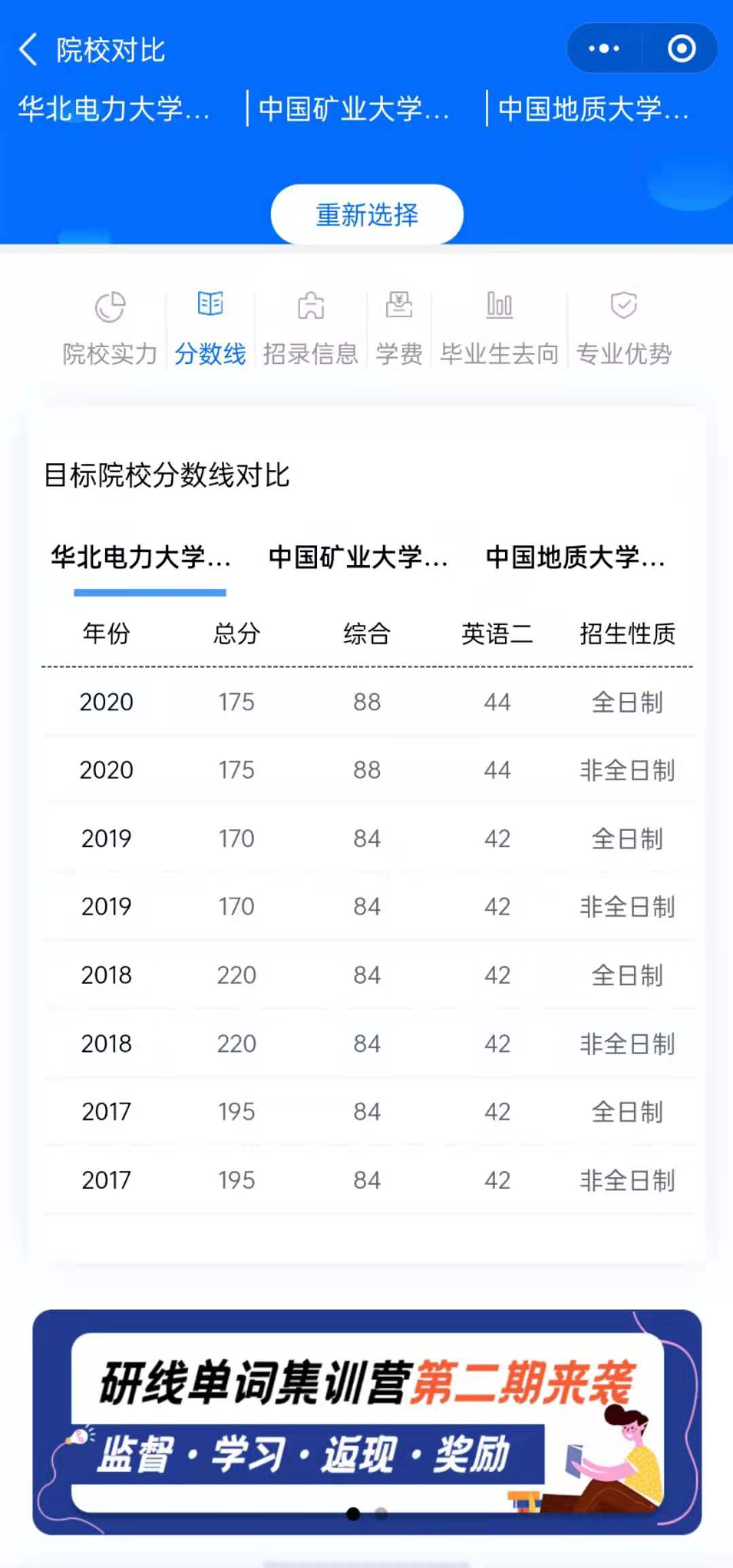 MPAcc考研助手還提供院校對比功能,將心儀院校加入對比,小程序會直觀的提供對比院校的詳細(xì)對比數(shù)據(jù),包括:院校實力、分?jǐn)?shù)線、招錄信息、學(xué)費(fèi)、畢業(yè)生去向、專業(yè)優(yōu)勢,幫助考生進(jìn)一步精準(zhǔn)擇校。