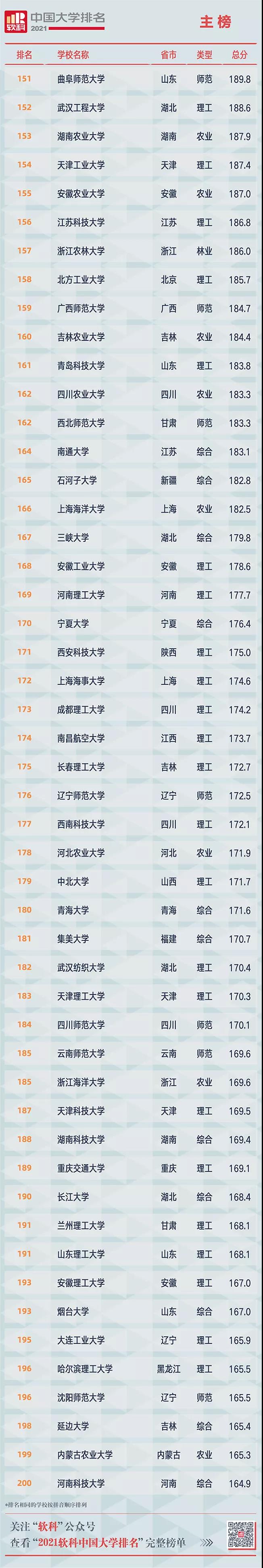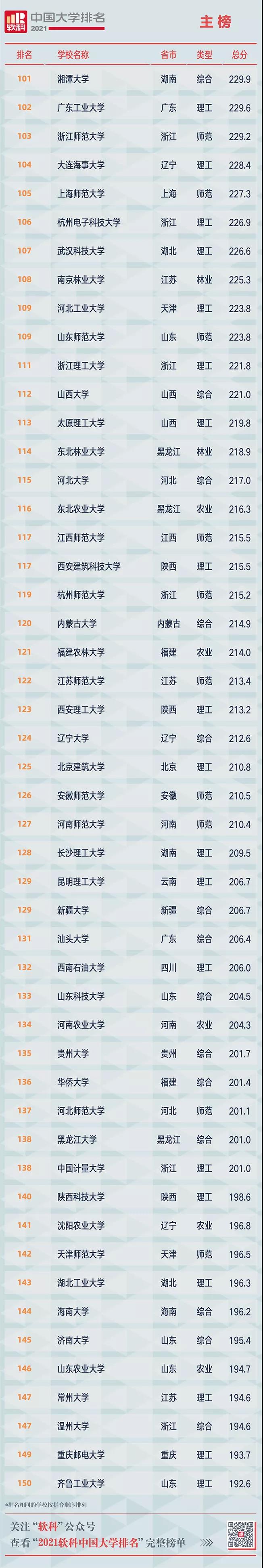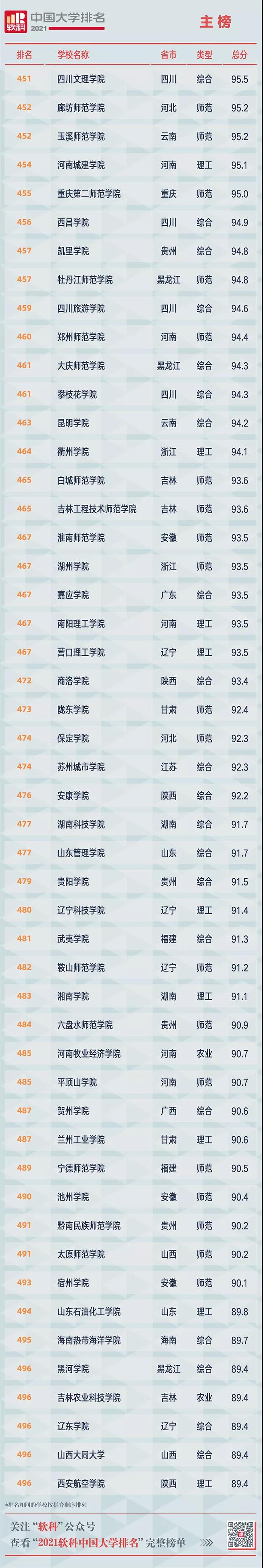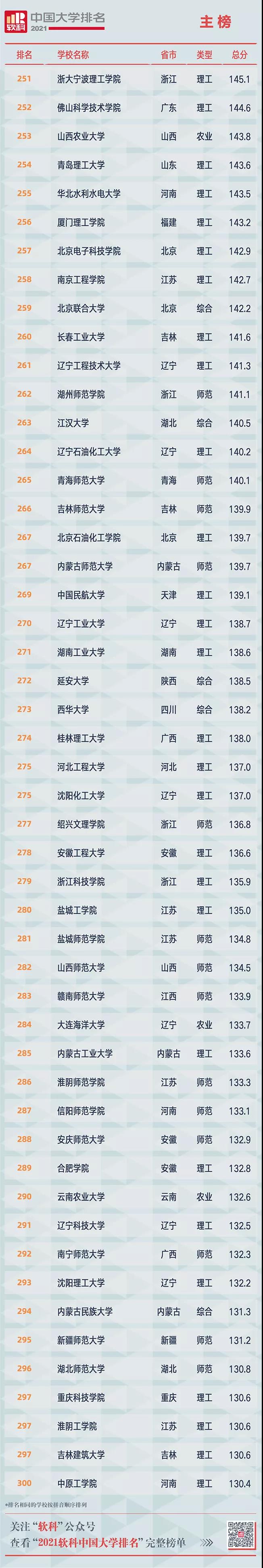 2021軟科中國大學(xué)排名(主榜)
