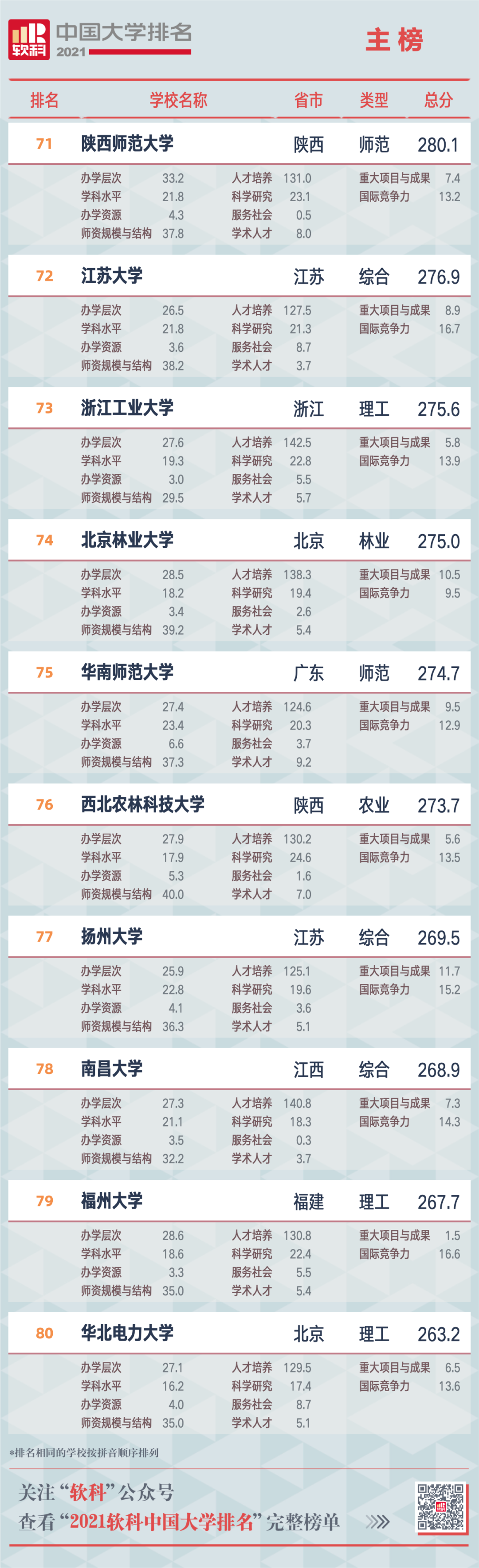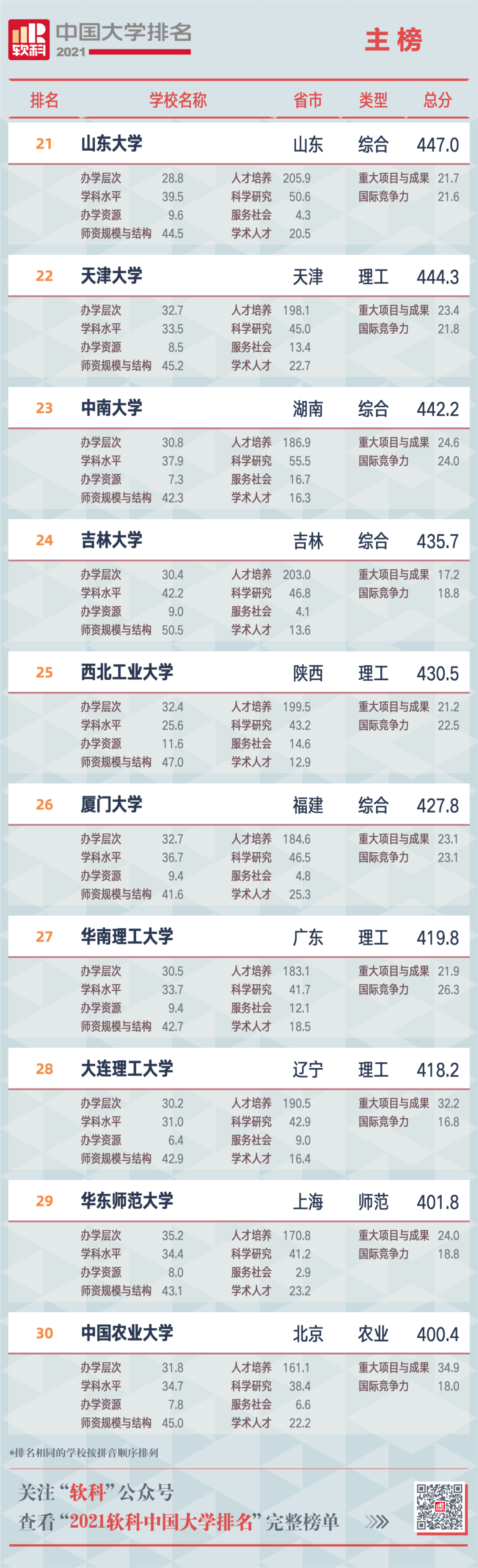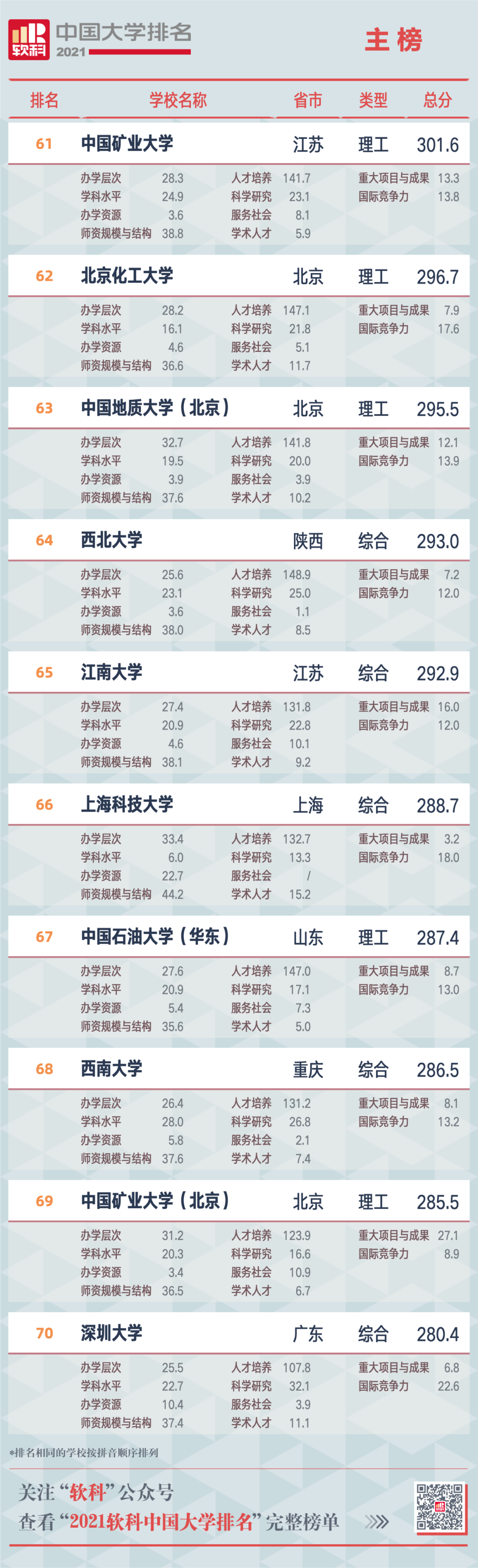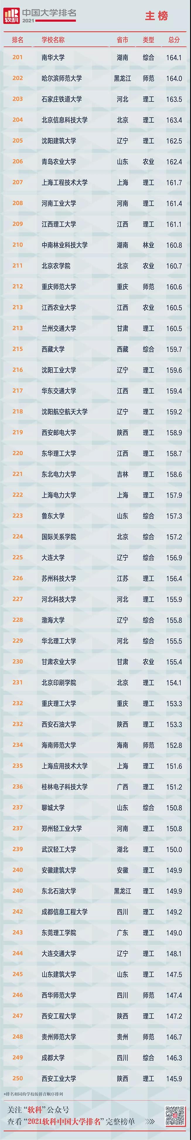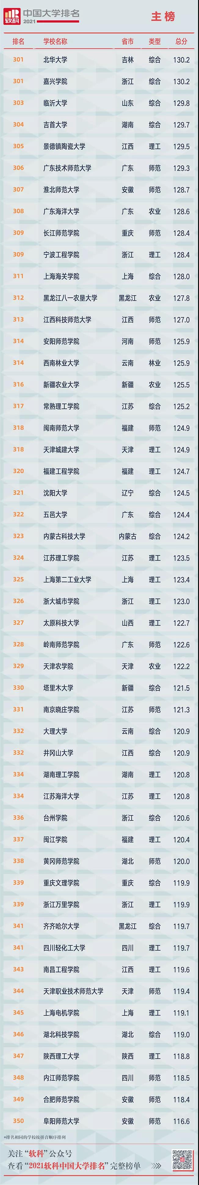 2021軟科中國大學(xué)排名(主榜)