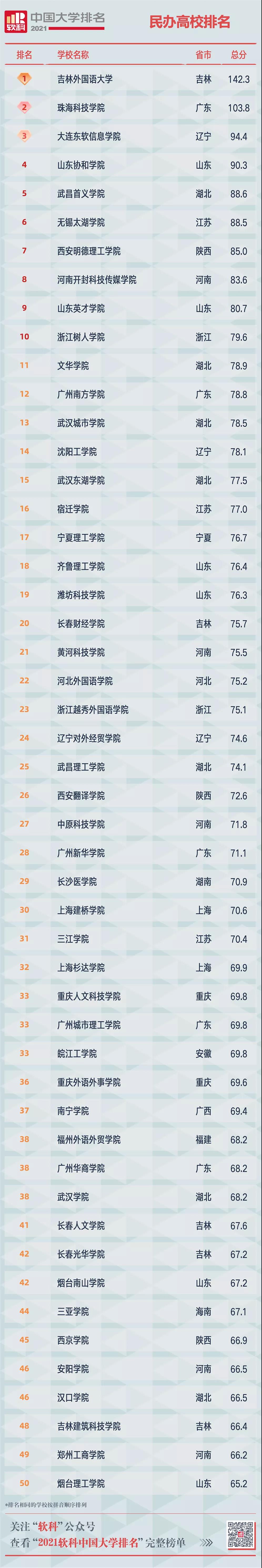 2021軟科中國民辦高校排名