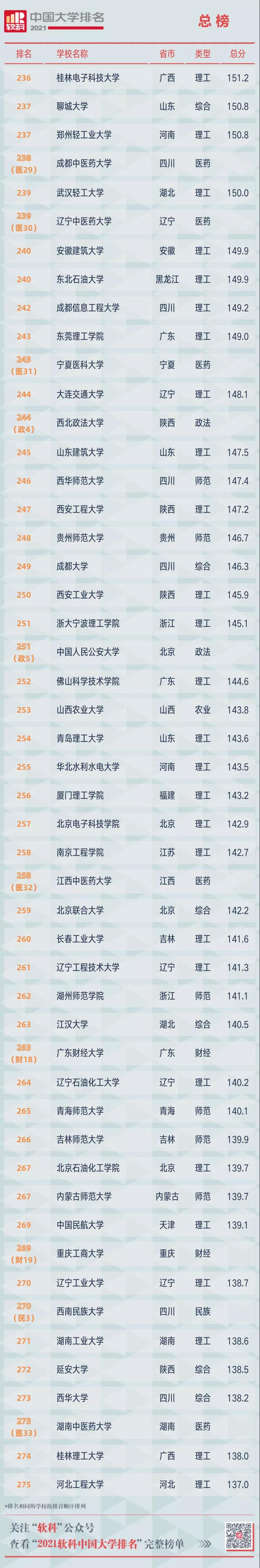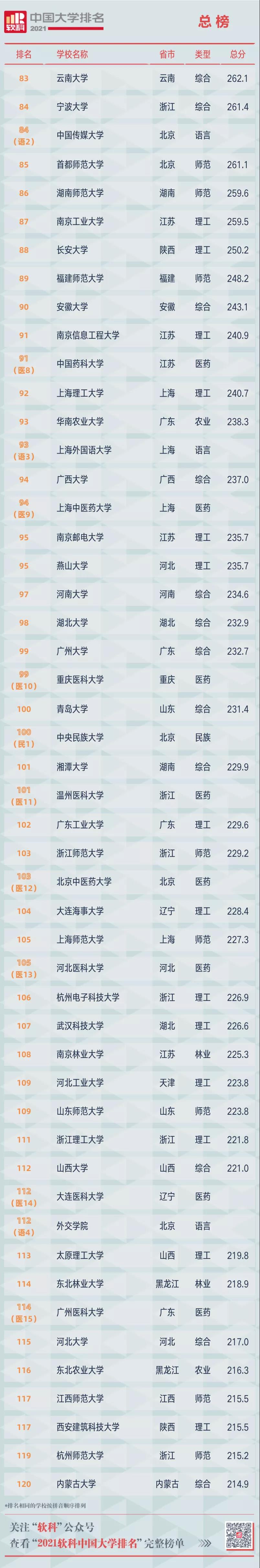 2021軟科中國大學(xué)排名(總榜)